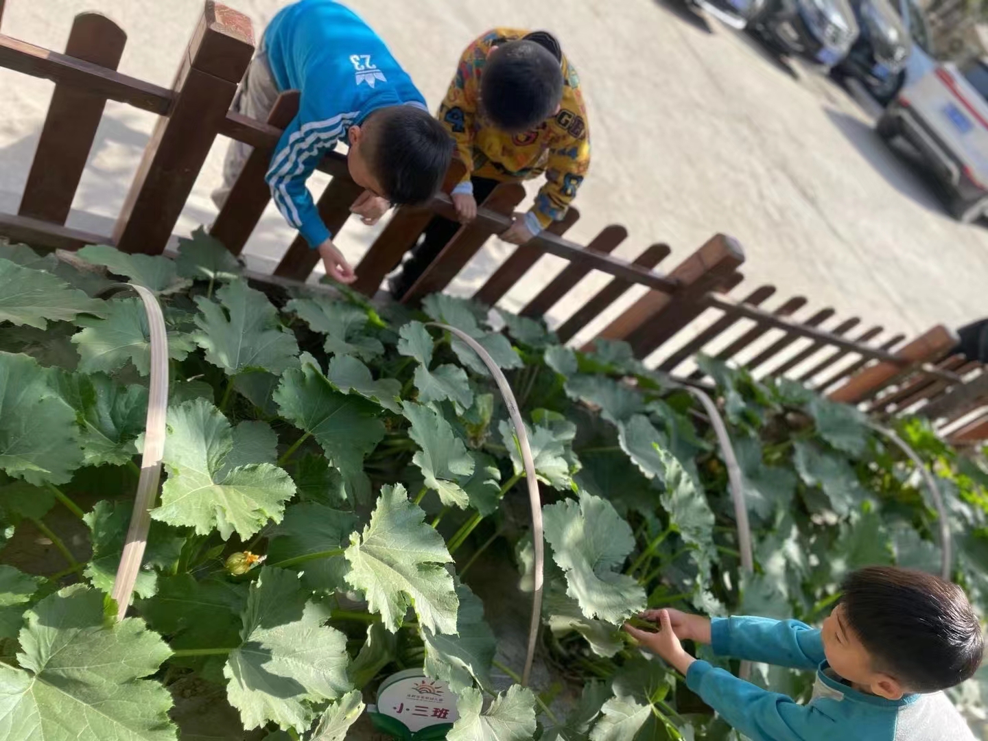 创设环境,最大限度地支持儿童与自然的链接。夏天孩子们种的南瓜,在秋天迟迟没有开花结果,寒冷的冬天即将来临,南瓜依然无果,就在大家讨论是否铲除南瓜藤,种植适宜冬天生长的蔬菜时,突然发现南瓜藤上竟然开出一朵花,结了小小的南瓜,这再次引发孩子们的激烈讨论——这样的天气南瓜还能长大吗?下一步该怎么做?